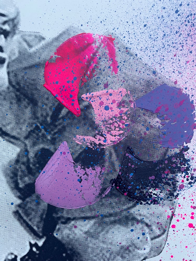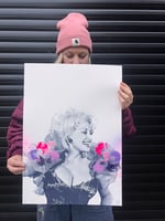 Dolly Parton, navy blue hand pulled screen print with hand finished swooshes, splats and sprays on Fabriano 300gsm. Limited edition of 40. Special launch price till Wednesday night only!